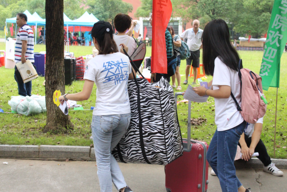 迎新第二天,华商的每个角落依然随处可见我系老师和团总支、学生会,记者团的工作人员,他们热情地为新生指引道路,提携行李,解答他们在报到注册遇到的各种问题。除此之外,我系在图书馆报到处开设了绿色通道,专门帮助家庭经济困难的学生实现大学梦想。