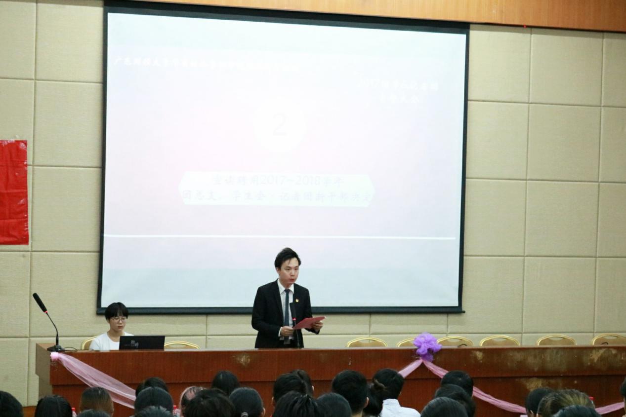我系团总支书记宋元跃老师宣布团学,记者团新干部决定。经过层层筛选及系领导同意,经济与金融系团总支·学生会·记者团共产生了225名干事和60名干部,恭喜这批新鲜的血液成为团总支·学生会·记者团的一员。