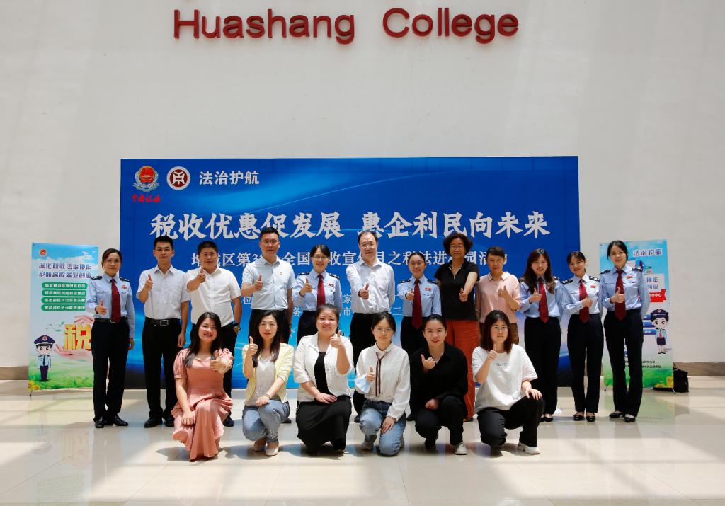 5月26日上午,税法进校园活动于我校图书馆报告厅线上线下同步举行,国家税务总局广州市增城区税务局与国家税务总局广州市税务局第三稽查局干部,华商学院副校长、会计学院院长陈美华教授,会计学院党委副书记、副院长陈洋广同志,会计学院副院长周书域,会计学院税务系主任高艳荣教授,副主任李志凤以及会计学院师生代表参加了活动。