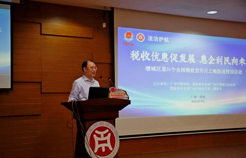 孟夏清和月,税收进校园。第31个全国税收宣传月正如火如荼开展,国家税务总局广州市增城区税务局与国家税务总局广州市税务局第三稽查局组成的税收普法教育宣讲团与我校携手开展主题为“税惠青春行,携手向未来”的税法进校园活动。