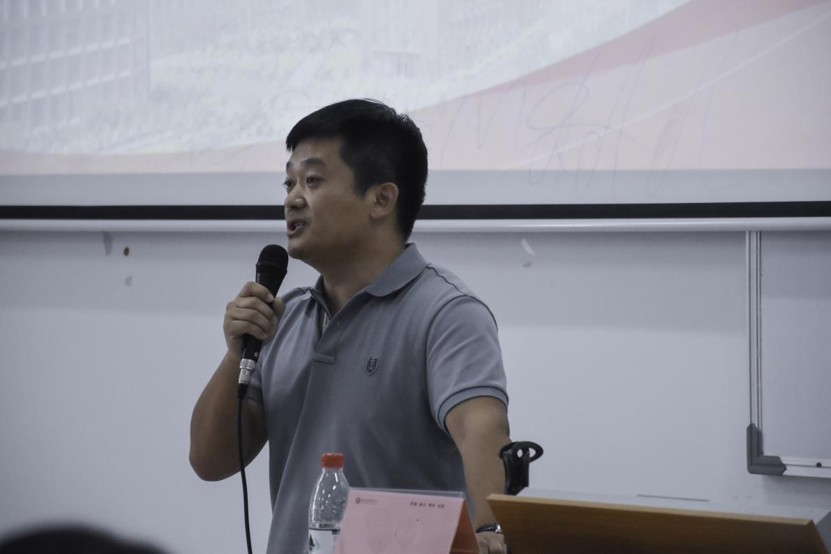 教师代表李明副教授从文化底蕴、科研实力、教学情况等方面向新生们介绍了学校的基本情况,希望新生们能够在学校过得开心,能够真正地学习到东西能够硕果累累,李明副教授最后祝同学们前程似锦,学校越办越好。