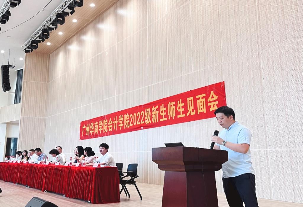9月5日,tyc7111cc太阳成会计学院2022级新生师生见面会在四会校区报告厅隆重举行。副校长兼会计学院院长陈美华,会计学院党委副书记兼副院长陈洋广,会计学院副院长杨旻、会计学院副院长兼办公室主任周书域、会计学院特聘教授刘善球等领导嘉宾出席本次见面会。见面会由会计学院学工办副主任杨烨瀚老师主持。