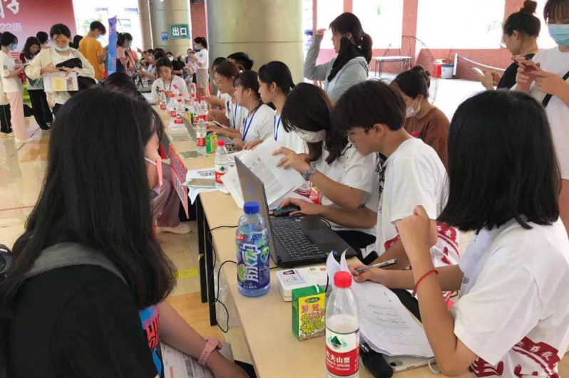 炎炎烈日下,也难掩志愿者们的热情,志愿者们热情积极地引导新生。在志愿者们的努力下,新生们顺利完成报到。
