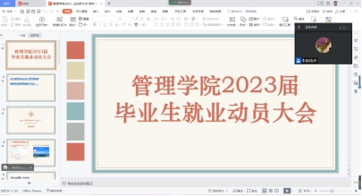 为进一步推动管理学院2023届毕业生就业工作的落实,学院各辅导员根据实际情况以分会场形式各自召开管理学院2023届毕业生第一次就业动员大会。在陈纯华老师的主持下,19本工商管理(专升本)2班、3班、4班于9月29日晚以腾讯会议形式开展了第一次就业动员主题班会。