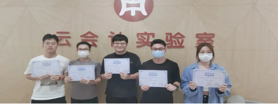 在宣读先进表彰的评选规则与标准后,由企业领导及校方代表分别为优秀学生们颁发了“会计匠才奖”“记账之星”“税务之星”“装订小能手”“最佳团队奖”“明日之星”等表彰证书,随后颁发了融智•正保财务云共享中心2022年度实训结业证书。
