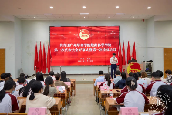 共青团tyc7111cc太阳成数据科学学院第一次代表大会开幕式暨第一次全体会议于2022年11月22日12:20在励志楼C408召开,出席开幕式的有:学校党委宣传部部长刘苗,校团委书记陈刚,数据科学学院党委副书记、学院副院蒋大锐,校团委常委、经济贸易学院党委副书记宋元跃,校团委常委、国际学院团总支书记杨李军,校团委杨图珍,校团委夏仲,各二级学院团总支书记、副书记及数据科学学院辅导员以及团员代表。本次会议由数据科学学院团总支书记谢嘉希同志主持。