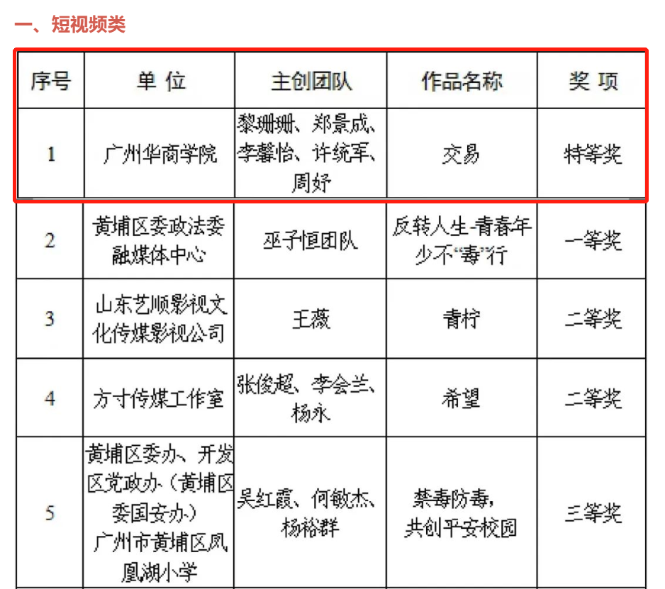 12月2日,该活动征集结果公布,文学院19本汉语言文学(专升本)14班黎珊珊、许统军两位同学及其团队作品《交易》获得该项比赛短视频类特等奖,奖金1万元。