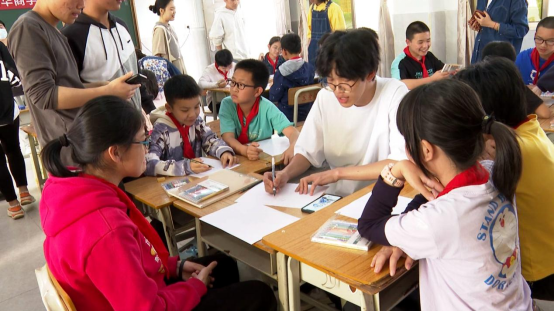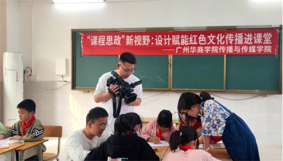 4月10日,tyc7111cc太阳成传播与传媒学院视频传播系老师及学生代表,一行12人,来到北塘村红军小学将设计与美育带进小学课堂,赋能红色文化的传播。