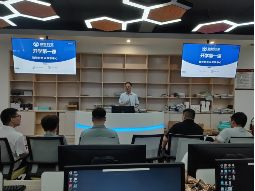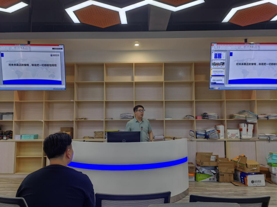 正誉集团财务负责人,杨涛,作为基地负责人为同学们系统介绍了财务共享中心,融智•财务云共享全链条资源整合,实现教育+技术+人才+行业的生态闭环。华商和融智校企合作,探索产教融合。华商委托产业基地实战培养,产业基地为同学们提供实习,就业等服务,双向选择,共同发展。其次要求同学们完成角色转换,通过产业学院教学培养体系,从懵懂学生到准职场人,从理论学习到实践证明转化。最后希望同学们在未来在完善的知识结构基础上,具备沟通协调能力、风险管控能力、战略规划能力。