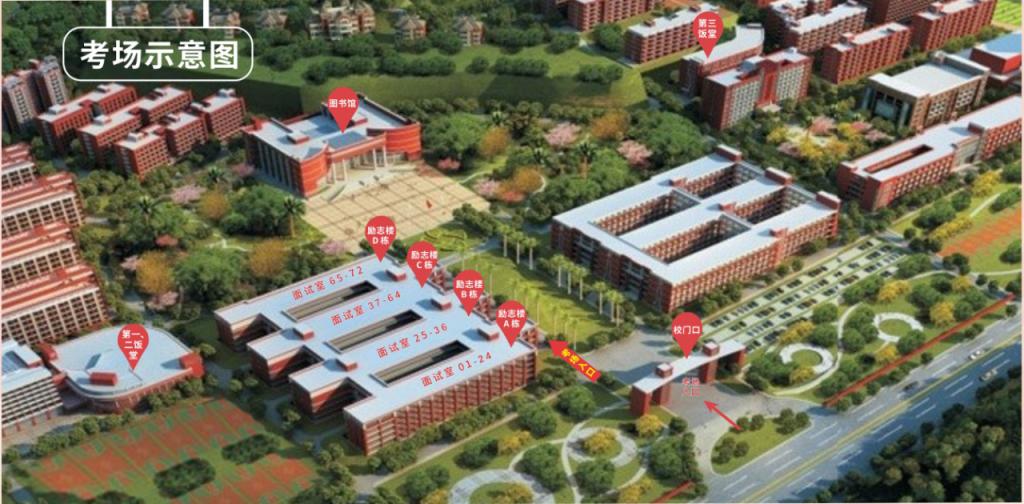 温馨提醒:学校门口是荔新公路,周边无停车场,违停可能会被交警部门处理。在此建议校外考生尽量不要自驾参加考试!