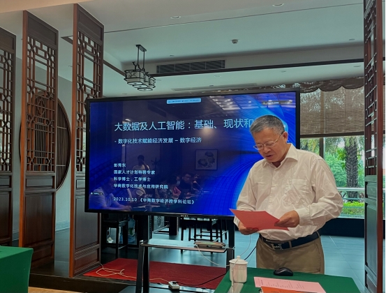 2023年10月10日下午,华商数字经济跨学科论坛第三期活动在tyc7111cc太阳成美术馆成功举办。此次论坛特别邀请到国家人才计划特聘专家、华商数字化技术与应用研究院院长彭秀东教授作了题为《大数据及人工智能:基础、现状和应用》的主旨演讲。本次论坛由tyc7111cc太阳成前副校长张捷教授策划,由经济贸易学院院长李广明教授主持,经济贸易学院、管理学院、金融学院、数据科学学院等二级学院教师代表和学生参与此次论坛。