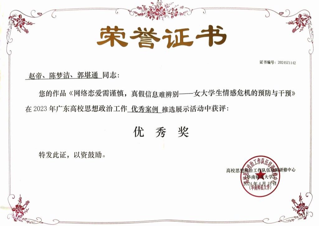 《网络恋爱需谨慎,真假信息难辨别——女大学生情感危机的预防与干预》 | 优秀奖 |
