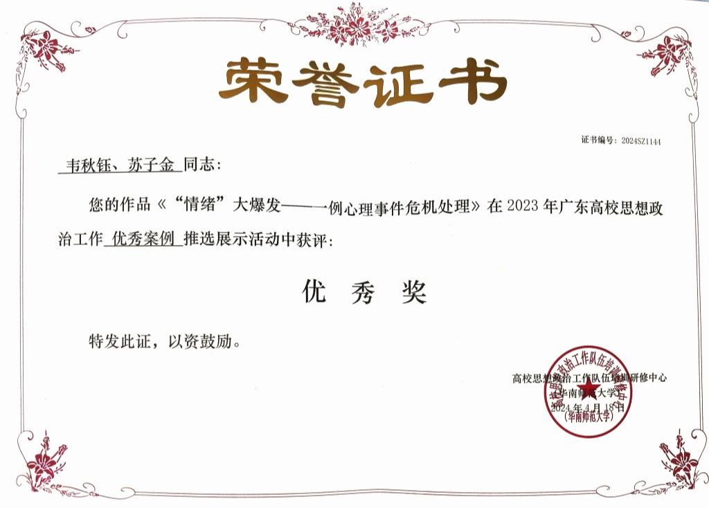 《“情绪”大爆发——一例心理事件危机处理》 | 优秀奖 |