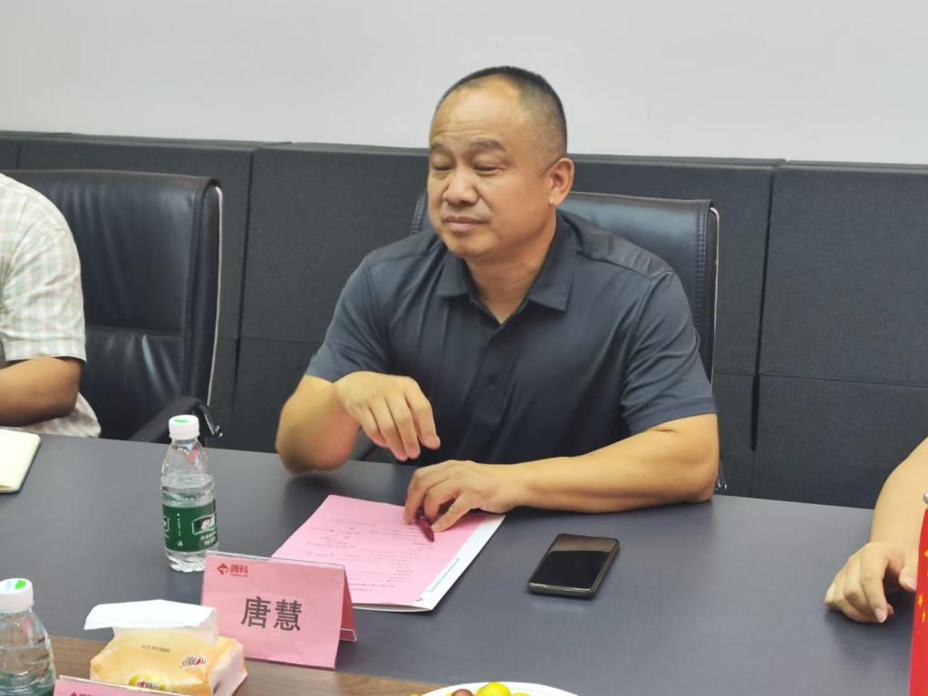 参与此次访企拓岗活动的有:人工智能学院院长戴经国、副院长陈洋广、产教专员徐胜超等。腾科网络技术有限公司对此次走访交流予以高度重视,企业CEO唐慧、经理陈聪、经理方少群等热情接待并进行座谈交流。座谈交流会由腾科经理陈聪主持。