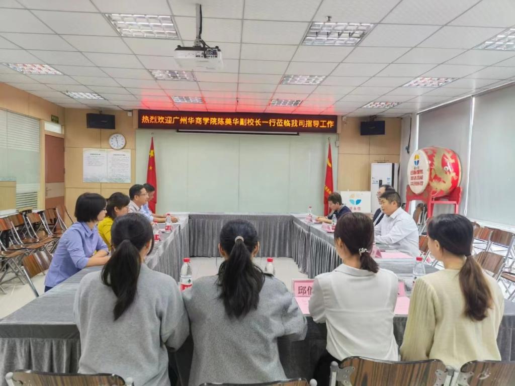 随后,德永信财税集团领导与陈美华副校长一行及我校实习生召开座谈会,座谈会由德永信集团人事经理袁春先生主持。座谈会上,冼朝卓总经理对陈美华副校长及我院领导教师的到来表示热烈欢迎。随后,冼朝卓总经理简要介绍了德永信财税集团的发展规模,师徒制人才培养模式及校企合作模式。