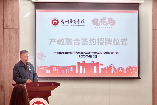 为进一步深化产教融合改革,促进校企合作取得新成果,4月3日下午,经济贸易学院与广州桃花岛传媒有限公司(下称:桃花岛)在图书馆教师发展中心互动室5举行产教融合框架协议签约暨授牌仪式。